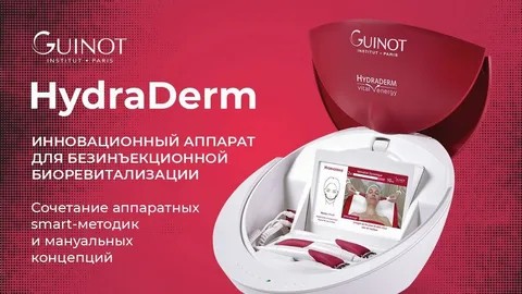 Hydradermie — неинвазивная процедура биоревитализации на интеллектуальном аппарате Guinot, сочетающая аппаратные методики и инновационные серумы-гели. Динамическая ионизация активизирует клетки, усиливает впитывание активных веществ и способствует регенерации кожи.